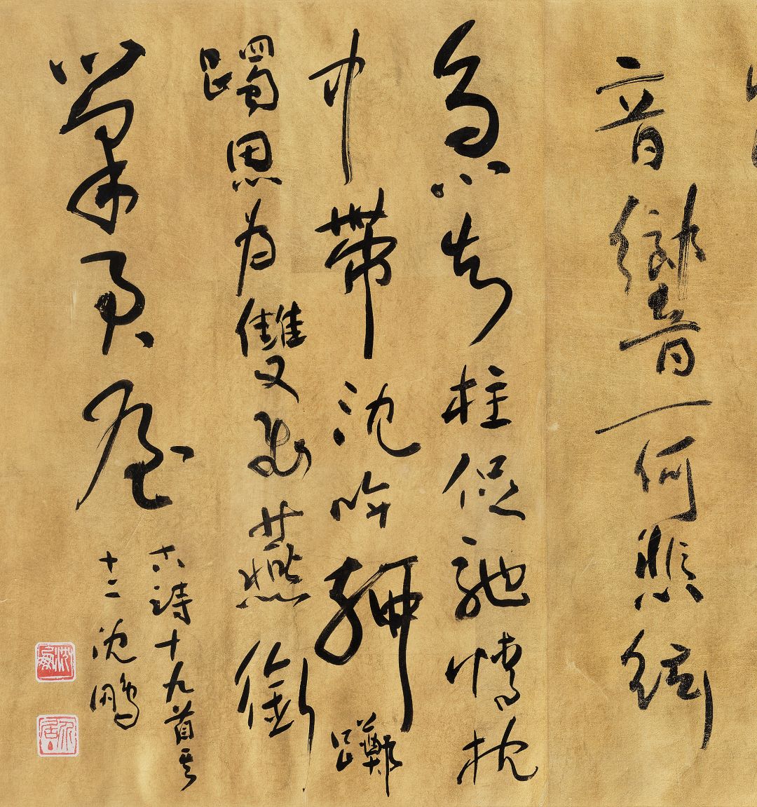 钤印:王镛、凸斋、晋祠人、垄上、得大自在、鱼鸟肖形、心迹