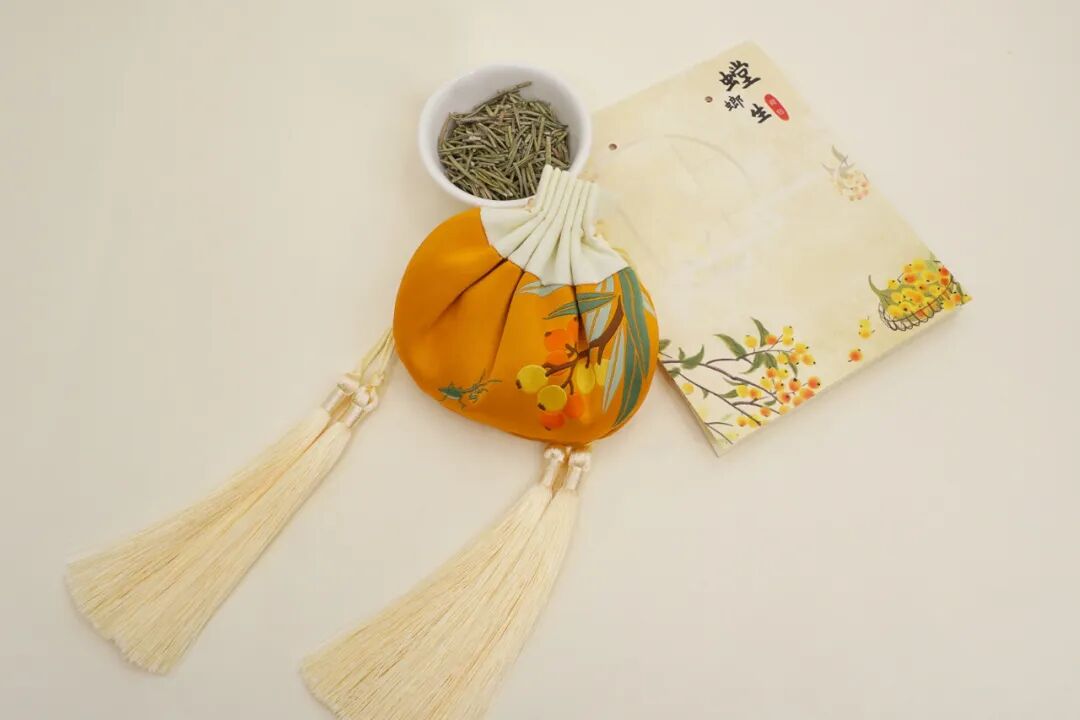 作为一款中式香囊,其采用古法制香工艺,特别甄选天然香料,经过择料、碾磨、融合等手工技法,将天地间鲜活美好的香气,按24节气藏入荷包中。