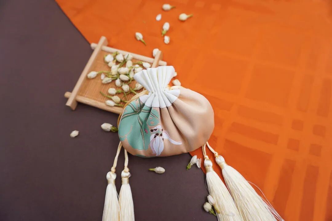 无论是窈窕淑女,或是翩翩君子,或是白头老妪,或是垂髫小孩,都能找到合宜的荷包。藏于家中,无论是摆在案头还是挂在花枝,日日都有香气萦绕抚慰。