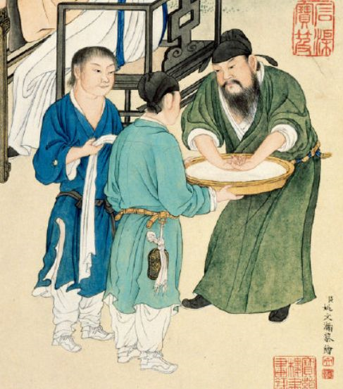 故宫博物院藏清·姚文瀚绘《勘书图》轴(局部)