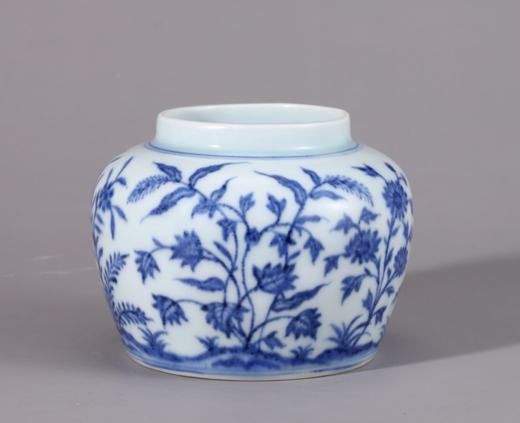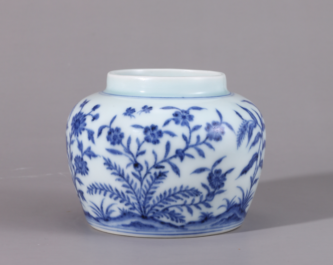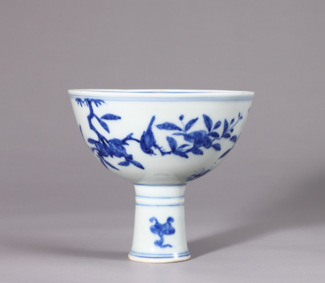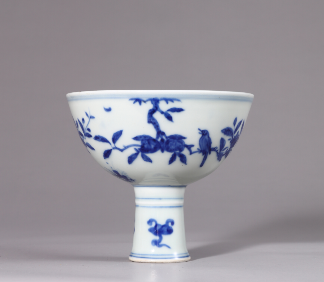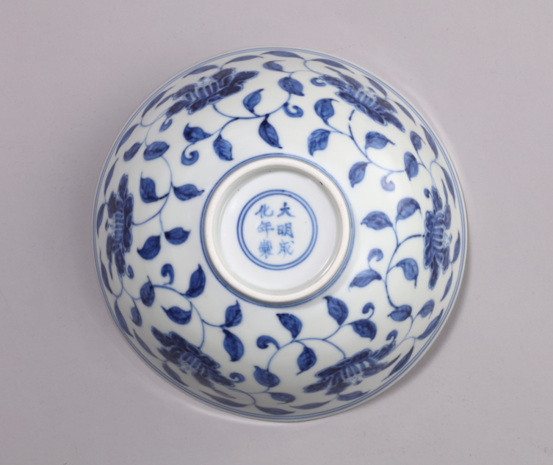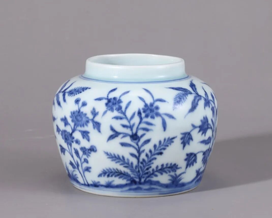成化一朝,社会相对稳定,经济得到发展,文化繁荣,一扫英宗以来王朝颓势,开始了大明中兴之路。此时景德镇御窑厂生产已全面恢复正常,成化皇帝本人的艺术素养颇高,能书善画,对陶瓷尤为青睐,成化御瓷一改永宣雄健之风貌,以其轻盈秀雅的艺术风格而著称。成化青花前期使用进口青料,发色浓重浑厚,近似于宣德晚期,中后期选择国产青料平等青,色调柔和宁静,绘画淡雅幽婉。尤其令人称道的是以青花为基础的斗彩、釉上矾红彩瓷器,在成化朝获得极大发展,所取得的工艺和艺术成就可以用空前绝后来形容。