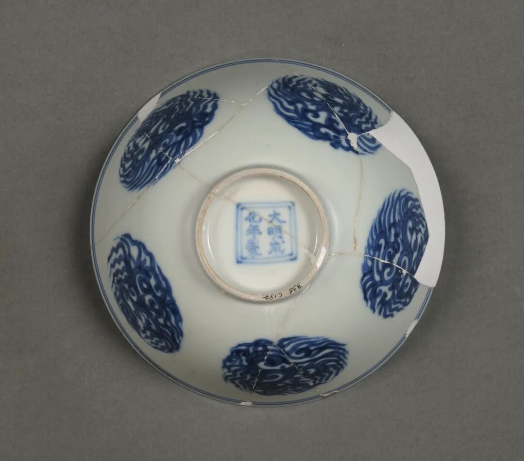 景德镇市陶瓷考古研究所分别于1982-1994年和2002-2004年,对御窑遗址进行了抢救性考古发掘和主动发掘,获得了大批珍贵资料。在第一期发掘中,出土明代洪武至嘉靖时期落选御用瓷器碎片十数吨、若干亿片,特别是1987-1988年,御窑厂遗址内珠山之顶修建龙珠阁,在珠山东北侧,清理发掘明成化官窑堆积三处,为成化官窑瓷器的分期提供了依据。根据对这三个堆积的研究,可将成化官窑分为三期:一期为成化四年以前,二期为成化四年至成化十七年之间,三期为成化十七至成化二十三年。又可将成化青花瓷分为二类:前一类青花为成化早中期(成化元年至十六年)的制品,其风格受宣德影响;后一类青花则为成化后期(成化十七年至二十三年)的制品,所谓成化风格便是指该期烧造的别具一格的瓷器。成化早期多沿用宣德纹样或简化前代纹样,后期使用画意清新的纹样,如高士、三秋、子母鸡、湖石山茶、十六子、池塘莲荷等。其青花纹饰画法上用双线勾勒再填色,线条细硬流畅;釉上彩纹饰填色则采用平涂法,有花无阴阳、叶无反侧的特点。
