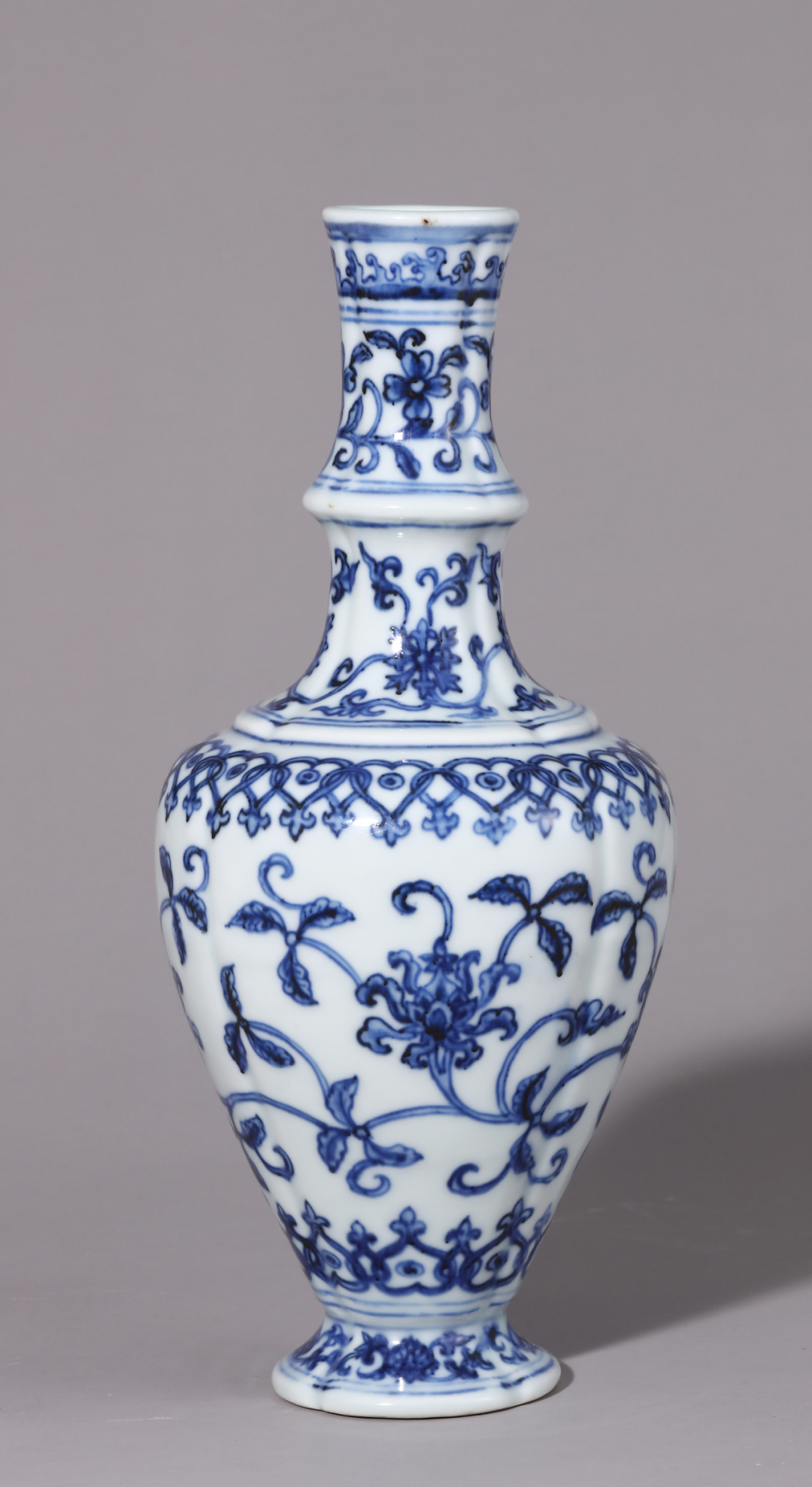 明成化 青花缠枝莲纹瓜棱甘露瓶