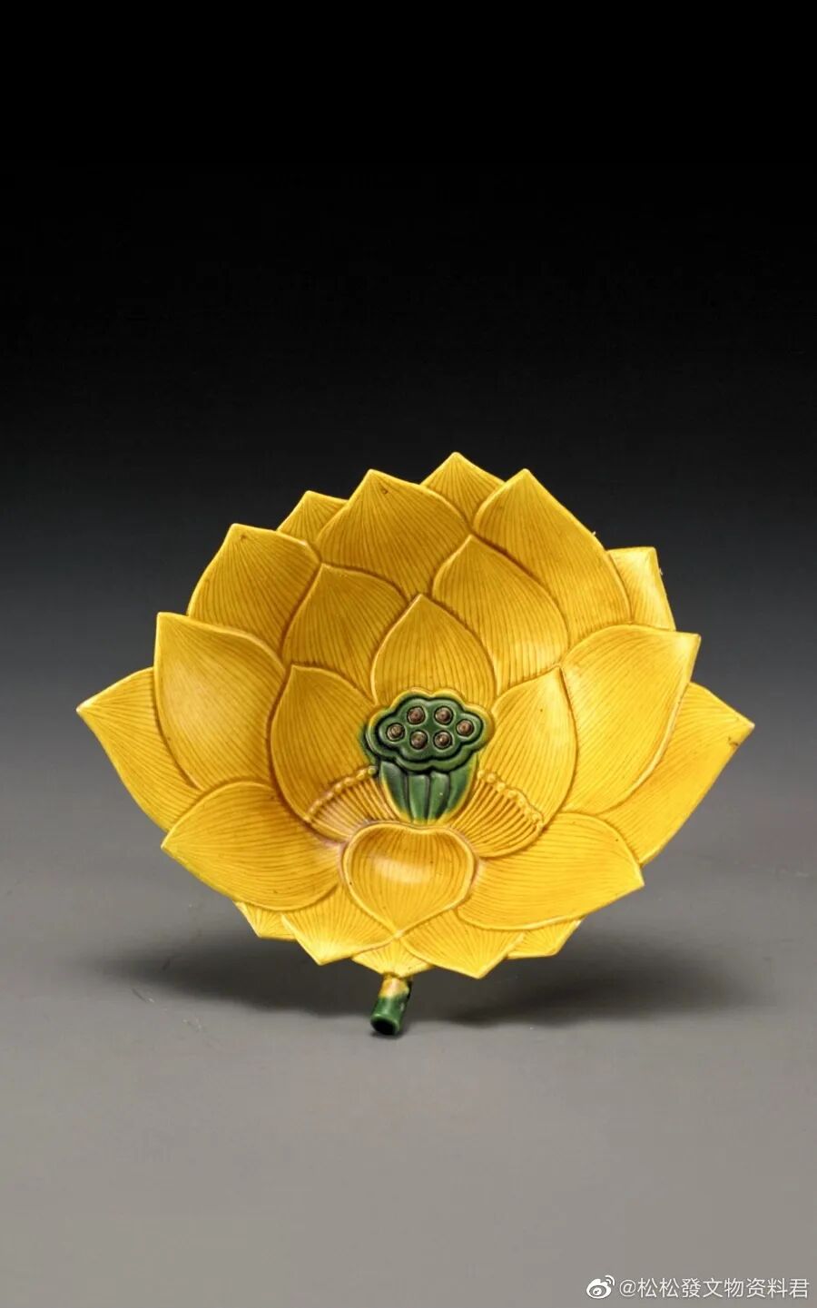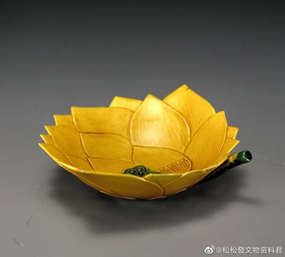 簇拥着花蕊处凸起的绿釉紫心莲蓬