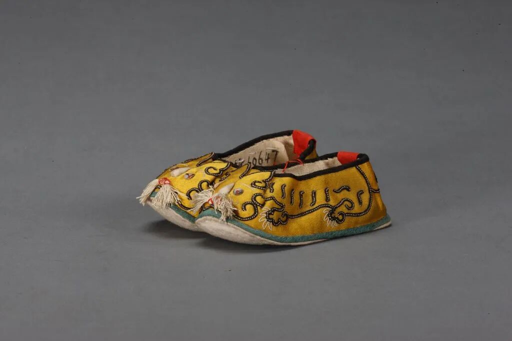 清 同治 黄色缎钉线虎头小夹鞋 故宫博物院藏