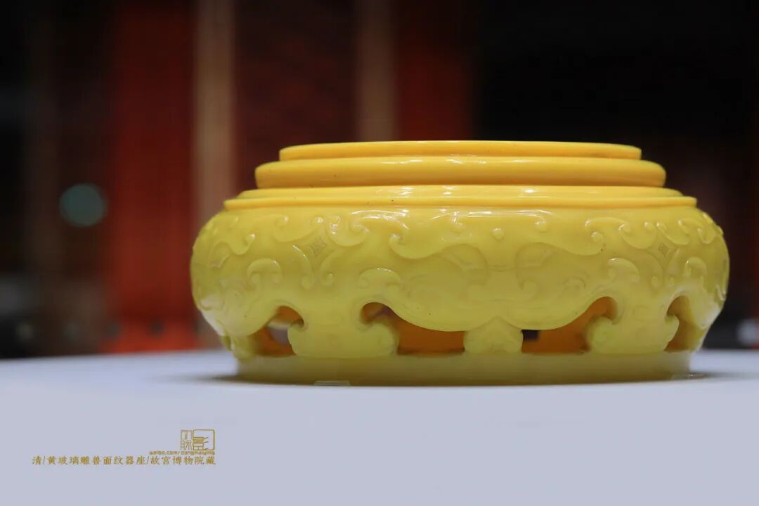 清 黄玻璃雕兽面纹器座 故宫博物院藏