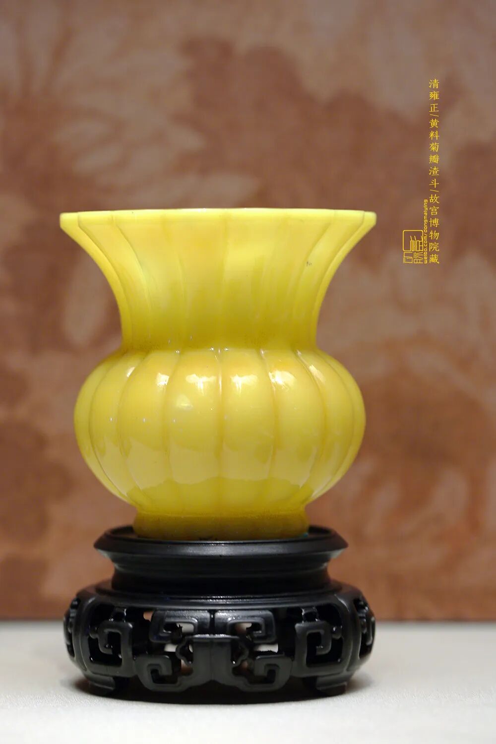清 雍正款 黄玻璃菊瓣式渣斗 故宫博物院藏