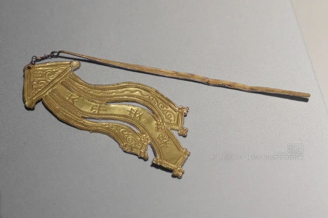 明 “太平安乐”幡形金簪 常州武进区博物馆藏