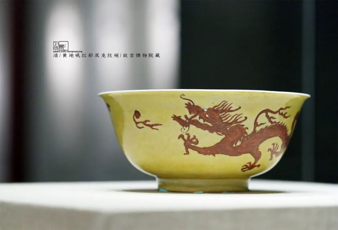 清 康熙 黄地红彩二龙赶珠纹碗 故宫博物院藏