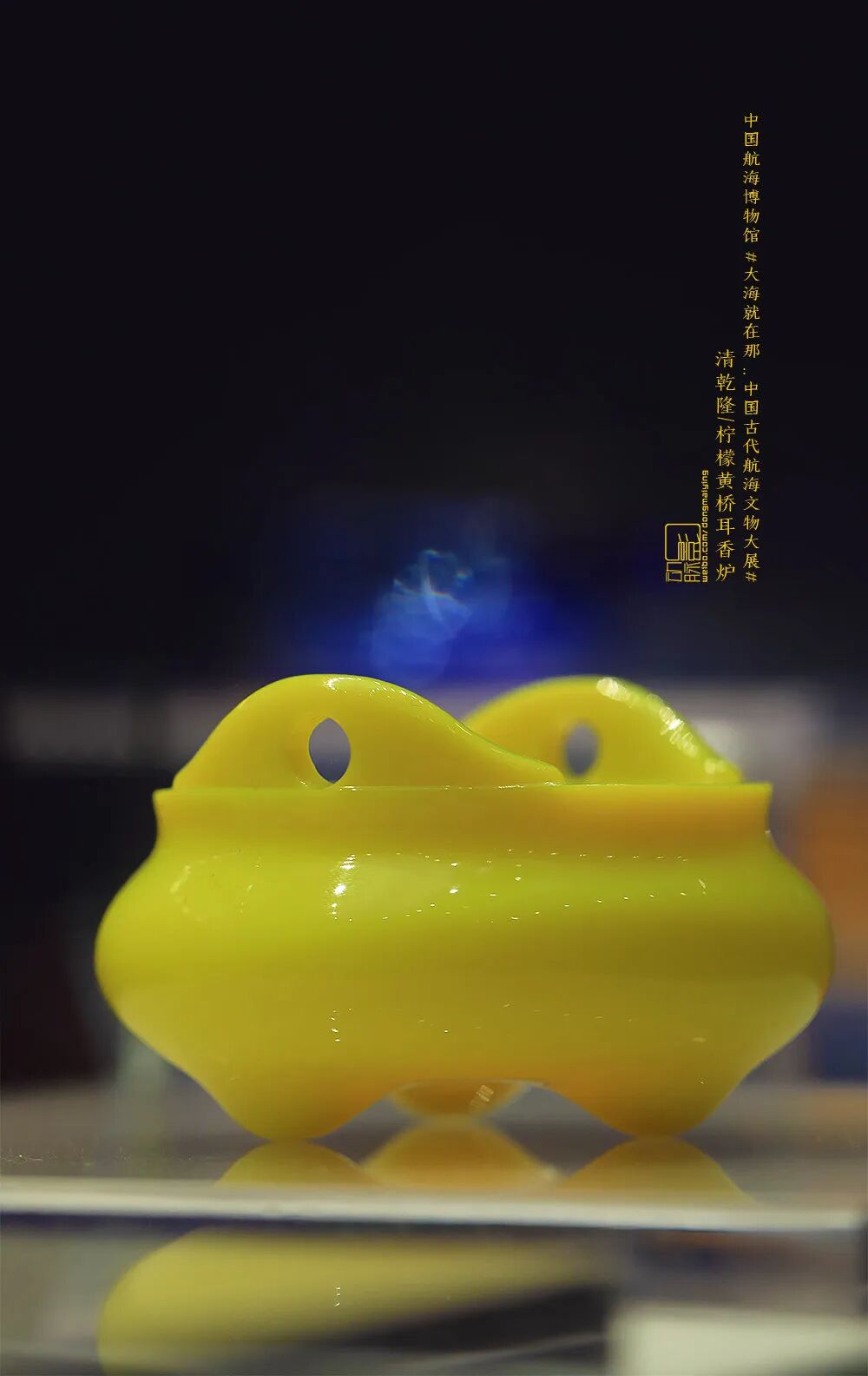 清 乾隆 柠檬黄玻璃桥耳香炉 中国航海博物馆藏
