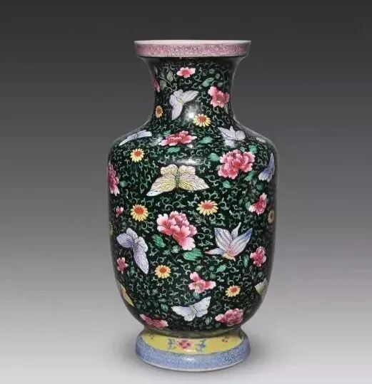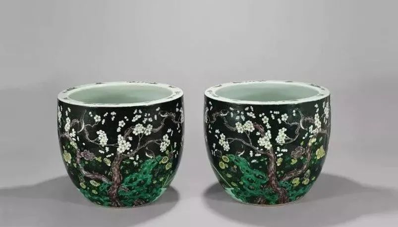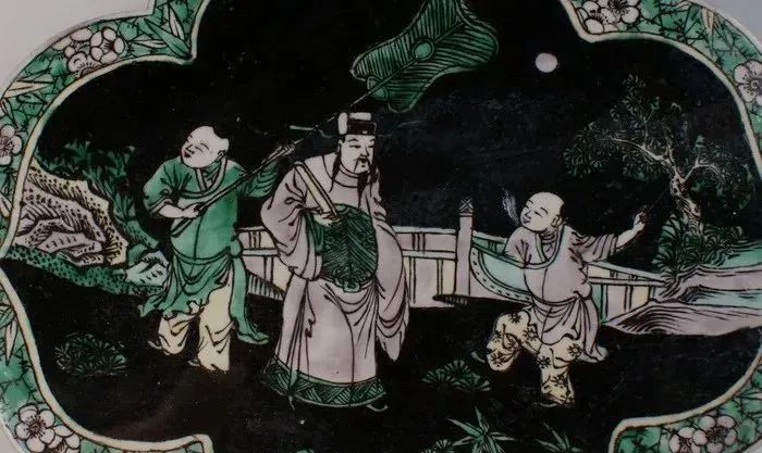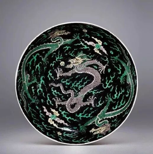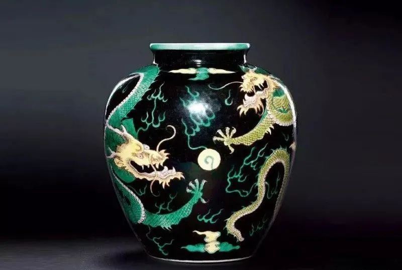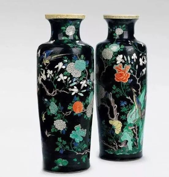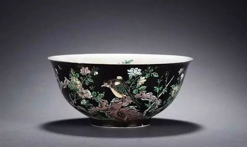 中国彩瓷的生产发展到清代,进入了一个创新的历史高峰。尤其是康、雍、乾三朝彩瓷,取得了举世瞩目的辉煌业绩。景德镇的素三彩瓷器创烧于明成化,经正德、万历时曾大量生产。到清代康熙朝的素三彩达到了中国素三彩瓷的顶峰,无论是数量、造型、装饰技法、图案纹饰及色彩的变化,都获得了空前绝后的成就。在色彩的运用上康熙素三彩亦较明代丰富多彩,除传统的黄地、紫地、绿地、孔雀绿地外,还创烧了墨地、米黄地、藕荷地等色地和状如虎斑纹的“虎皮素三彩”等新品种。在这些素三彩器中,均以康熙时期墨地素三彩器最为尊贵,是名重一时的名贵品种。我国历代陶窑鉴定家都认定“五彩以描金为贵,三彩以墨色质地为贵”清·寂圆叟《雅陶》一书中说,黑彩主要着色元素是铁、锰、钴和铜,系用钴土矿和铜花片配制而成,玻璃质感强,光亮,常用于大面积的填色。据《明清釉上彩瓷器》中记载:“墨地素三彩,也是康熙时首创的,且是最为精彩的品种。……此均为民窑产品,传世极稀,属极为名贵品种。墨地三彩在当时仅供居丧守孝之用。”素三彩中以墨地最为名贵,主要用作奠祀之礼。制作时,先在器物上施以绿釉,复施黑色釉即为光亮鲜明的墨地,是其特有的色泽;再以泛紫的深黑笔迹勾描禽鸟、花卉等图案,留白纹饰范围处施以黄、紫、绿等色釉,方始一器,工艺繁缛之极,故后世殊不敢仿。陈浏的《陶雅》曾有这样的论述“康熙黑釉之大瓶上画梅花,笔意粗恶,西人目为三彩,每一只动辄万余金”。再证诸《饮流斋》的论说:“茄黄绿三色绘成花纹者,谓之素三彩,以墨地为最贵……西人嗜此,身价极高,一瓶之值,辄以万金,以怪兽为奇特,人物次之,若花鸟价亦不赀也。”足见其之贵重。康熙墨地素三彩器物所用之彩料均为明末所遗矿彩,亦称“古彩”或“硬彩”。古彩是一种传统瓷器釉上古老的装饰方法,起源于明代,成熟于清代,又称“五彩”、大明五彩”、“康熙五彩”、”,“硬彩”等,是我国陶瓷装饰艺术中一门优秀的传统装饰,由于它具有独特的风格特点,精湛的艺术造诣,丰富的艺术语言表现,历来为国内外陶鉴赏家和收藏家所推崇。素三彩瓷大多是官窑器,唯有康熙时期的墨地素三彩瓷是民窑器,但其比官窑素三彩瓷更为珍稀。墨地素三彩乃烧自民窑,釉质粗糙,砂底无釉,器身无款,何以名贵如此,这一疑窦并不自今日始,《饮流斋说瓷》的许之衡就曾指出:“瓷质较粗,底多沙眼,而视同拱璧,殆有解人难索者矣。”康熙墨地素三彩瓷,有其独特的时代背景。满清自入关以后定鼎中原,实施以汉治汉的政策,提出了以仁孝治天下的政治口号,于是以孔孟儒家哲学思想作为工具,“千经万典,孝义为先”,故而当时社会上对“生,事之以礼,死,葬之以礼,祭之以礼,可谓孝矣” 。康熙皇帝以“孝”来汉化国人,故此对祭奠仪式,非常讲究,隆重到无以复加的程度。如制定“丁忧”礼制,何为“丁忧” :凡在朝廷为官者包括一、二品宰辅封疆大吏在内的王公大臣,只要父母之中任何一位去世,都要去官职回家守孝三年,孝满之后,再回朝复职。由于朝廷的礼制,故而对丧事的祭器不得不精益求精,当时操办丧事都得定烧一批高档墨地素三彩瓷器以为丧事宴客祭奠之用,各王公大臣府第,钟鸣鼎食之家,为了炫耀其门第高贵,相互间迭有攀比,故而不惜重金提供最好的画本、顶级的画师、优质的彩料等等,务求产品出类拔萃,甚至高出官窑之上,以达到死者风光,生者荣耀的目的,所以才有了这种陶瓷史上的璀璨明珠。更特殊的是这种奇葩异卉竟是民窑产品,这是由于当时的官窑都由工部派员督窑,如康熙十九年的臧应选、四十四年的郎廷极,他们都是奉钦限或部限烧制,对祭祀用品是有忌讳的,不能烧制,故只能委诸民窑了。所以康熙时期的墨地素三彩器物,工艺不如官窑非常精致,底部也常见沙眼,为掩饰其缺陷,多在底部上一层护胎汁,且不见款字。康熙素三彩除墨地以外其余各种色地的素三彩几乎全是官窑产品,但都无墨地名贵。康熙墨地素三彩由于是皇家及其王公大臣所用祭祀用品,生产有其局限性,产品极其稀少。而雍正即位后对朝纲励精图治,反腐倡廉,为了惩治“诸王朋党” 厉行俭约,无一人再敢于大操大办丧事,墨地素三彩名品也就从此绝烧了。此外,这种产品因是祭祀用品宫廷也不收藏,难入宫闱的墨地素三彩由康熙到现今的三百余年之间,这其中的天灾人祸,战争毁损,再加之外国人的强取豪夺,高价搜求,时至今日,康窑墨地素三彩也就稀若晨星,成为陶海遗珍、民族瑰宝了,身价更是与日俱增。一直到清末民初,由于外国人刻意高价搜求,古玩商为利而仿烧,古玩市场中的康熙墨地素三彩鱼龙混杂,收藏赝品者亦不在少数,甚至国外博物馆也有陈列。至今,即便是清末民初的康熙墨地素三彩仿品,也为今人所珍视。康熙墨地素三彩因其典雅端庄、时代感强,一直备受人们的青睐,这也导致后世仿制者甚多,收藏爱好者需从胎釉、色彩、造型和款识等多方面具体比较来辨别真伪。时下传世品中的墨地素三彩瓷器,多为光绪及民国仿品,仿品中还有以康熙原胎旧器剥去釉面,后挂墨彩地或其他种色地的仿作,但这些仿品和后加彩器物与真品相去甚远,均能一眼辨之。