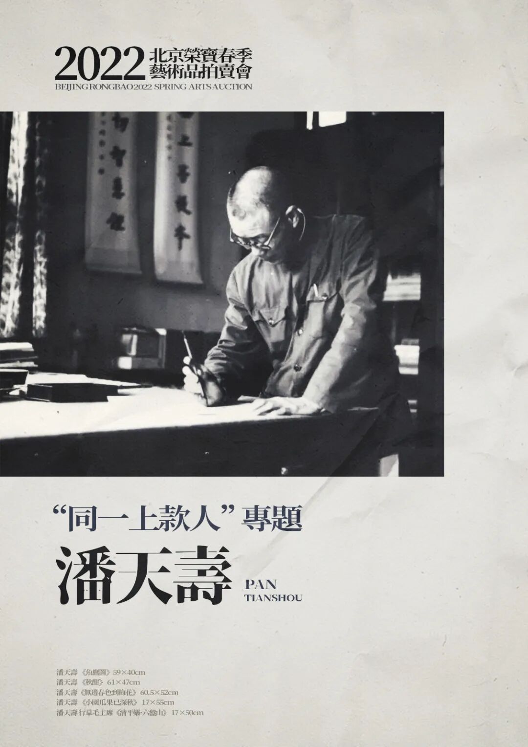 此次春拍中国书画版块中潘天寿的《鱼鹰图》《秋酣》《无边春色到梅花》《小园瓜果已秋深》《行草毛主席<清平乐·六盘山>》为同一上款人专题作品,上款人李学智,其1923年2月生,山东临清人,生于吉林省宁安县(今属黑龙江省)。中国共产党的优秀党员,1937年9月参加革命工作,1938年12月加入中国共产党抗日战争爆发后,参加山东清平县抗日游击队。先后历任中共宁夏回族自治区委员会原第一书记,中国人民解放军宁夏军区原第一政委,中共第十一届中央候补委员、第十二届中央委员,中共十三大代表,第七届、第八届全国人民代表大会常务委员会委员、民族委员会副主任委员。时与书画界众名家私交甚笃,友谊颇深。