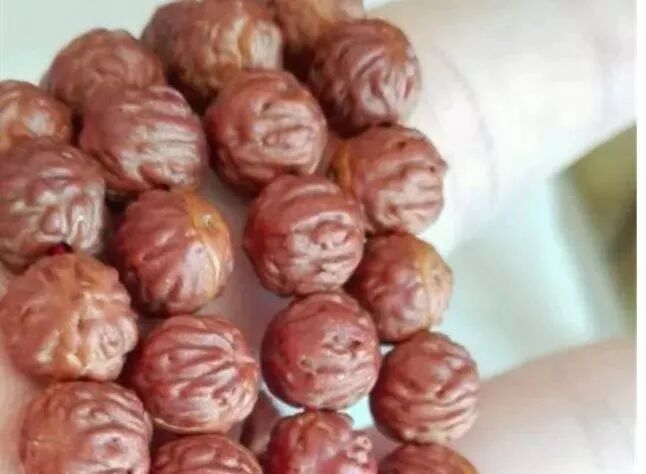 几年前,玩友@不做格斗小白 买了一条小凤眼,7mm的小尺寸,350元入手。(这尺寸、这价格……)他把这串凤眼爱如宝贝地盘了好一阵,后来偶见间,他猛然发现:自己被骗了!酸枣,很多人小时候都摘过。田野里地头上几颗酸枣,变红的口感酸酸甜甜。没成想,儿时吃过的酸枣核还能当串盘呢!用酸枣核来假冒凤眼菩提是有渊源的,因为凤眼菩提学名是埃塞俄比亚枣,也是一种枣,本质上同源,只是模样多少有些不一样,小白玩家容易上当。