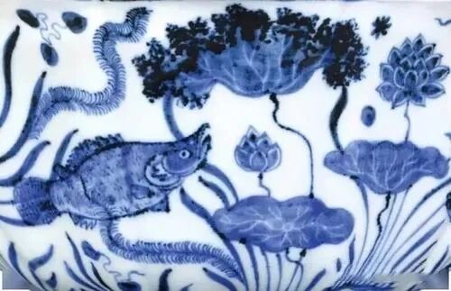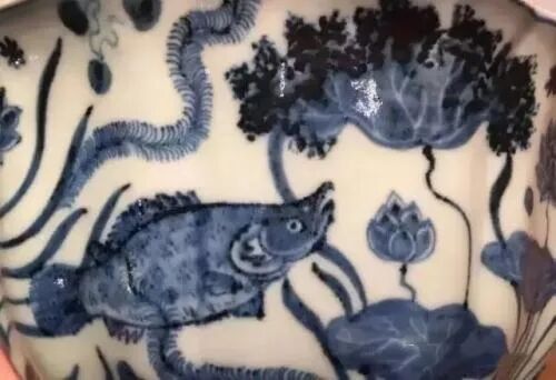 鱼藻纹属常见中国瓷器纹饰,与莲塘组合含“连年有余”之吉祥寓意,体现了特有的吉祥文化。据史料记载,北宋末年,宫廷画师刘寀擅画鱼,以鱼为题之水墨作品自此开始流行,进而影响到瓷器绘画。鱼居水中,不便微察细观,因此画鱼又较其他禽鸟更难。![]()