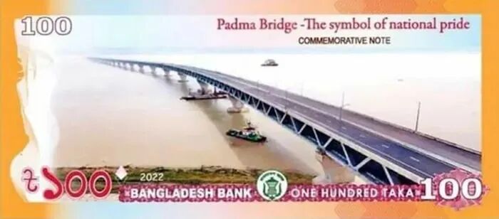 为了纪念这一历史性时刻,孟加拉国央行特别发行了一张以“帕德玛大桥——国家骄傲的象征”为主题的100塔卡纪念钞,发行量1000万张。