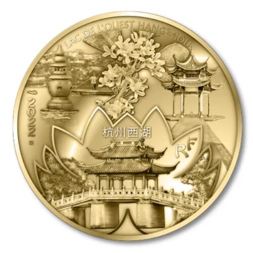 这枚“西湖纪念币”面值1/4欧元,由联合国教科文组织授权、法国巴黎造币厂铸造,国内发行量为20万枚。