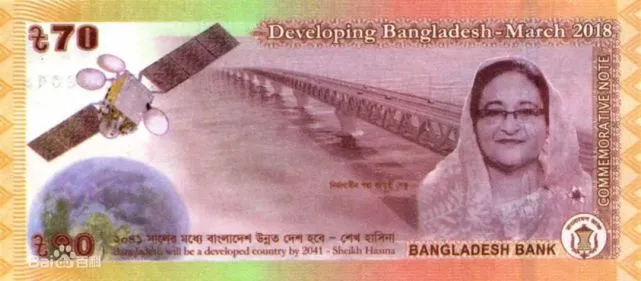 其实这不是帕德玛大桥第一次登上纪念钞了。2018年发行的,孟加拉国国家经济发展70周年纪念钞的背面,就印有帕德玛大桥!