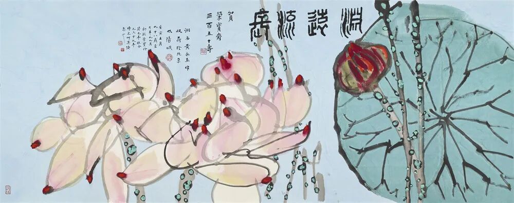 湘西黄永玉作双荷于北京太阳城,壬寅五月九十八岁差半月九九矣,初识荣宝于癸巳年距今已六十九年,时光何其倏乎也。