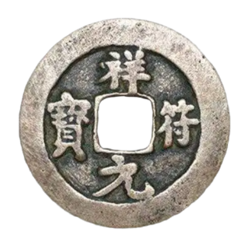 祥符元宝,是北宋真宗赵恒祥符年间所铸的钱。钱上的楷书“祥符元宝”四个字,据说还是宋真宗的御书。