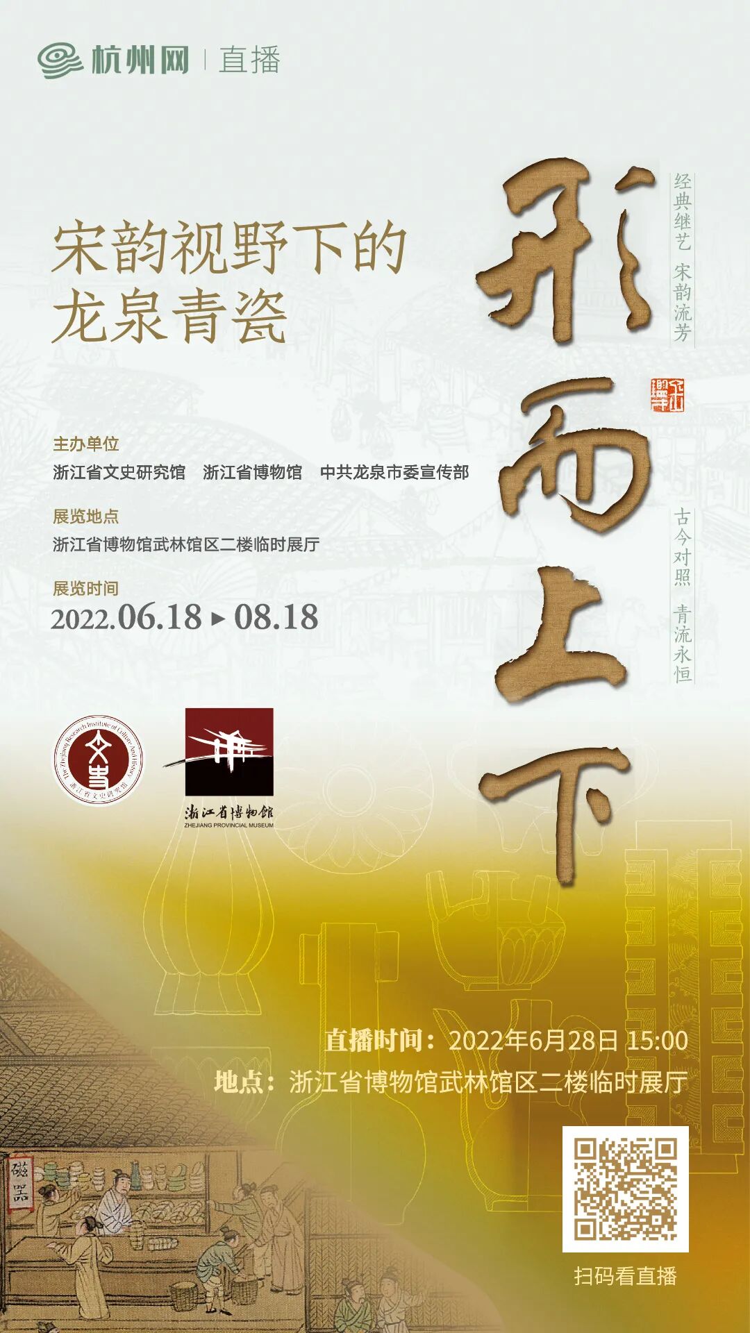 6月28日15:00,“云上浙博”系列直播,抖音、视频号、今日头条、快手四大平台联合直播,执行策展人杜昊,将带着大家逛展,感受青瓷技艺的经典与传承,通过古物新器对话展呈,让凝结宋韵精粹的青瓷“活”起来,让千年宋韵“流动”起来。