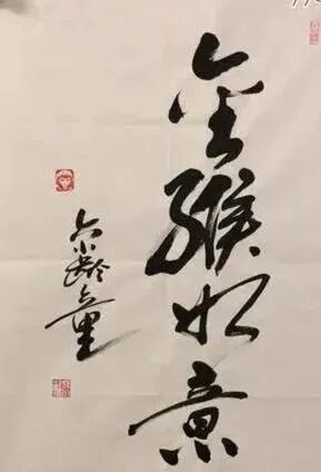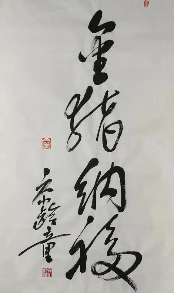 章金莱先生写书法,以前没有见过,所以看起来很新鲜。再加上对其扮演孙悟空实在太熟悉,所以面对他的书法作品的时候,还是能产生一些亲切感的。章金莱先生的书法,写得龙飞凤舞、潇洒率意,很见性情。这种书法的气质,像极了孙悟空的个性——活泼聪敏,略带俏皮;又有些毛毛躁躁、不够沉稳。![]()