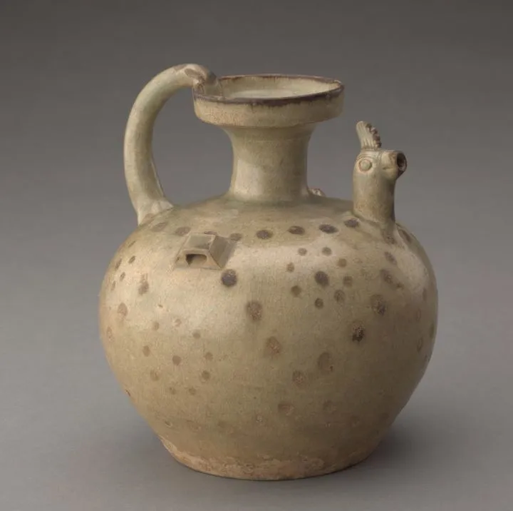 瓯窑 宋瓯窑青釉褐彩蕨草纹执壶,温州博物馆馆藏