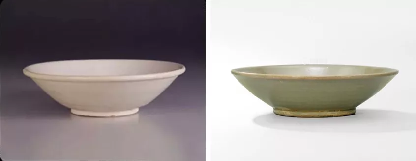 唐代邢窑白瓷,故宫博物院馆藏(左)VS 唐越窑青釉茶瓯,佳士得2016秋拍