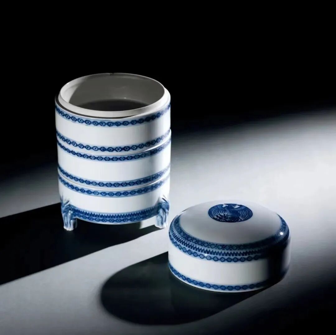据光绪三十年(1904年)《梨花伴月收存不在印档瓷器清册》中记载,热河行宫梨花伴月西围房存“青龙小盖罐十件”。所制或为此式盖罐,并可知其曾藏于热河行宫之中。热河是清代皇帝避暑和处理政务的场所,又称之为避暑山庄,此处所藏均为历代皇帝御用之物,亦凸显本品地位不凡。