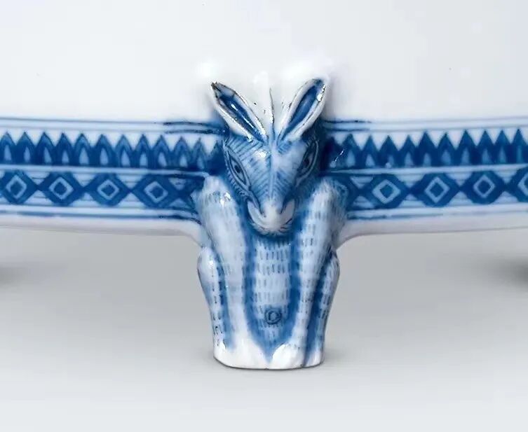 本品器形周正,胎釉具佳,其纹饰构图,通篇画意,以及多层次的青花呈色,都无不体现浓郁的工笔花鸟画风,其必为宫廷画院厘定御瓷画样后定制,远非庸工俗匠所能为之。其历经三百年余年,得以留存,难能可贵。若置于斋室之中,植入青莲几朵,鱼翔浅底,极显高雅装饰效果。此外,其传承有序,来源清晰,且存世甚鲜,颇值珍视。