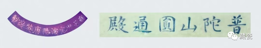“普陀山圆通殿”、“雍正甲寅年(1734年)沈阳唐英敬制”楷书款