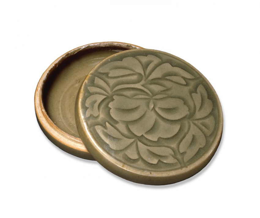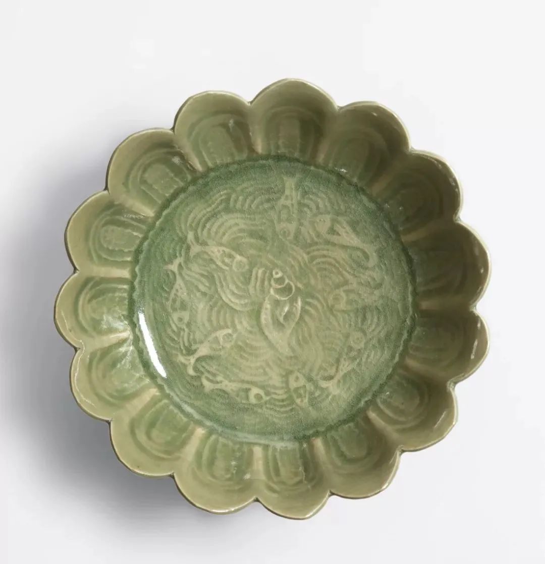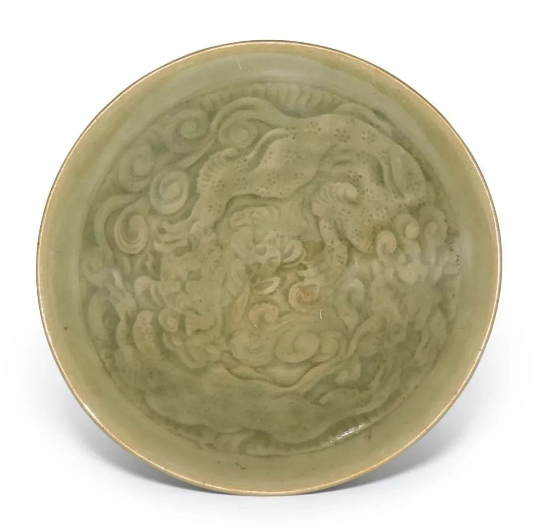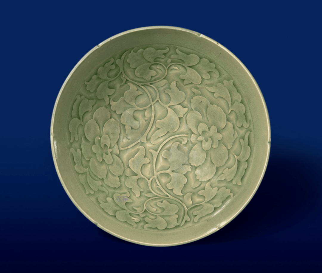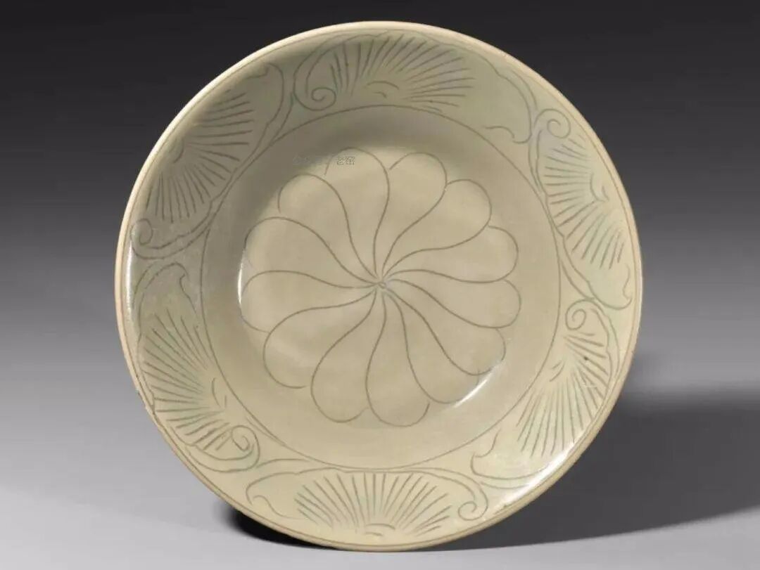 北宋 耀州窑青釉刻牡丹纹盘 纽约苏富比