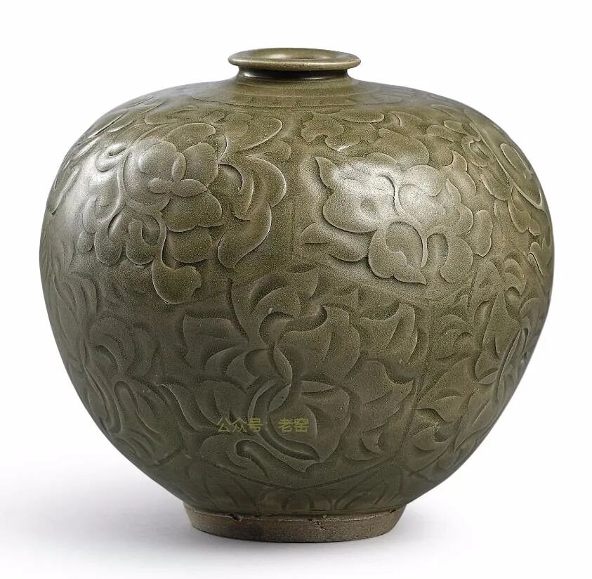 北宋 耀州窑青釉刻花牡丹唐草纹嘟噜瓶