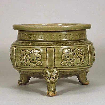 北宋耀州窑夔龙纹兽足炉-日本大坂国立美术馆藏