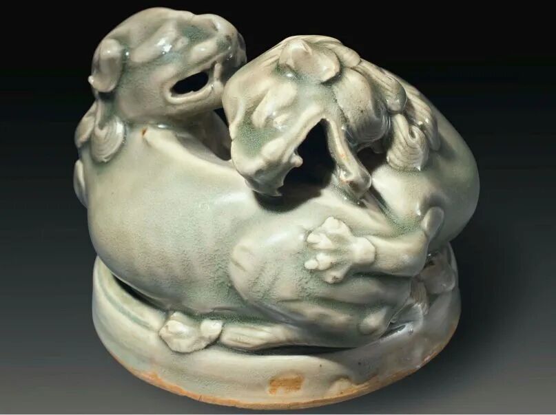 北宋 耀州窑青瓷双狮造型香炉盖 安思远旧藏