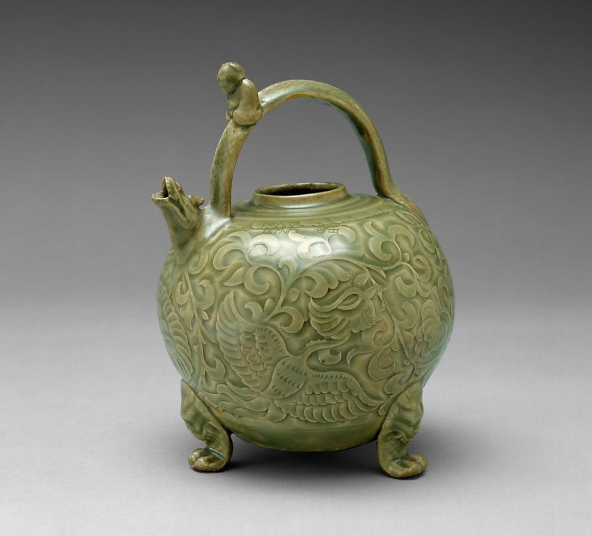 北宋耀州窑青釉刻缠枝牡丹纹执壶