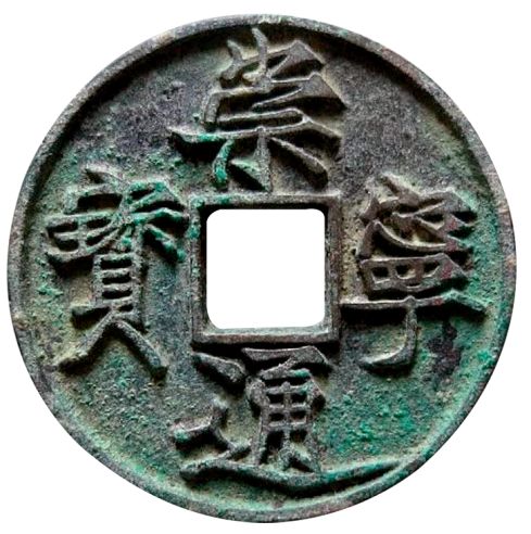 宋真宗赵恒在开创“咸平之治”的同时,也曾亲书钱文,铸行过御书钱。真宗在位期间铸有:咸平元宝、景德元宝、祥符元宝、祥符通宝、天禧通宝,这些铸钱虽只用真书一体,但题写的钱文笔态各殊,铸工精到,令人爱不释手。其中“祥符元宝、通宝”开创了并行流通之例,是真宗诸钱的代表。