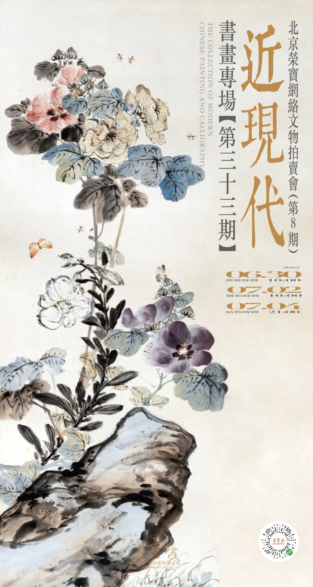 北京荣宝网络文物拍卖会(第8期)·近现代书画专场(第三十三期)将于6月30日10:00-7月2日10:00开启线上预展,并于7月2日10:00开拍,7月4日21:00结拍。