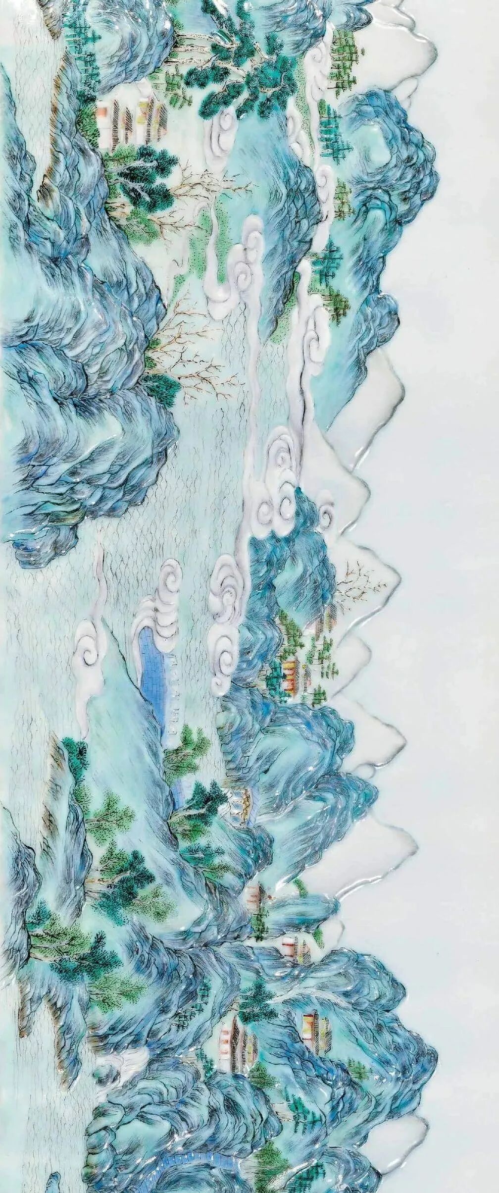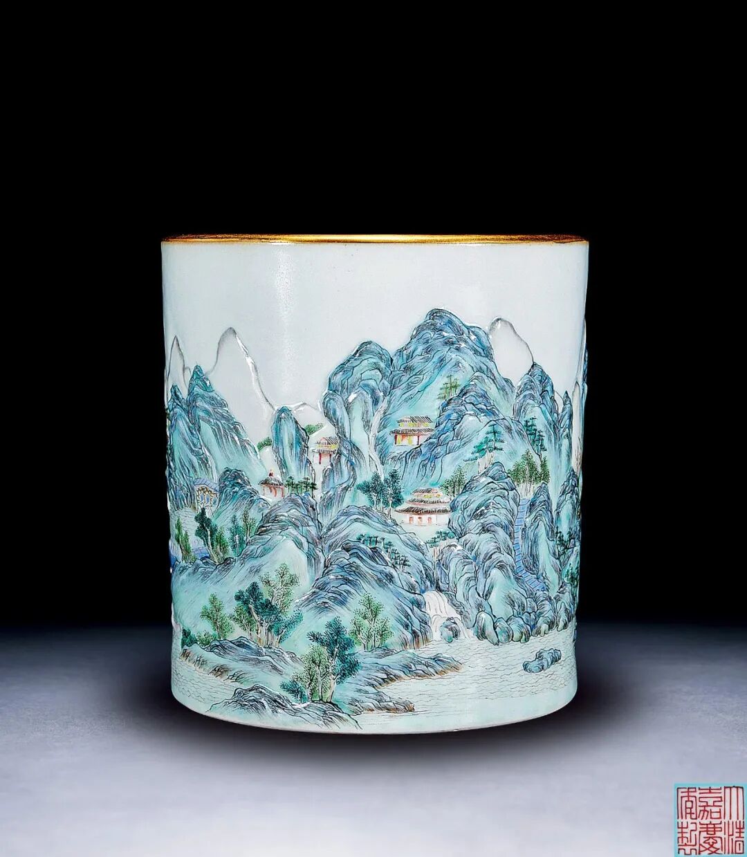 清嘉庆 粉彩浮雕西湖山水图笔筒(400-600万)