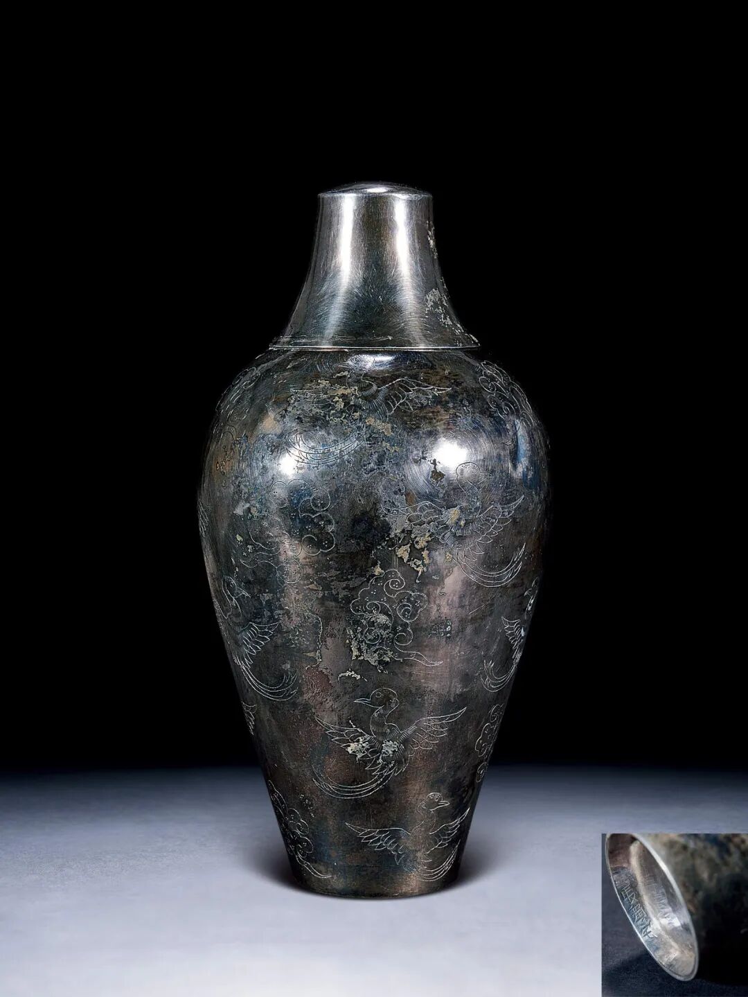 宋 银錾刻云雀纹梅瓶连盖(5-8万)