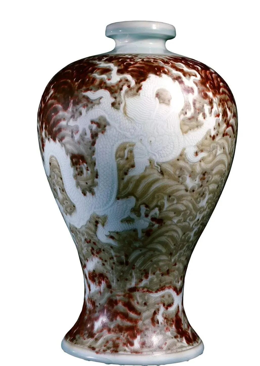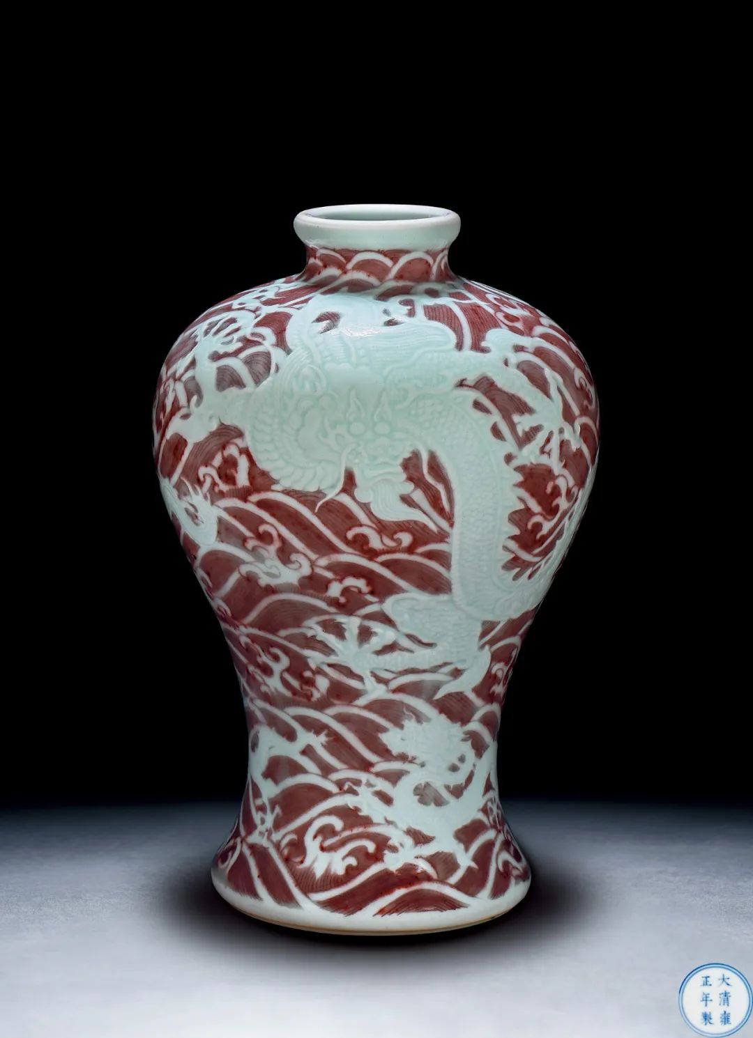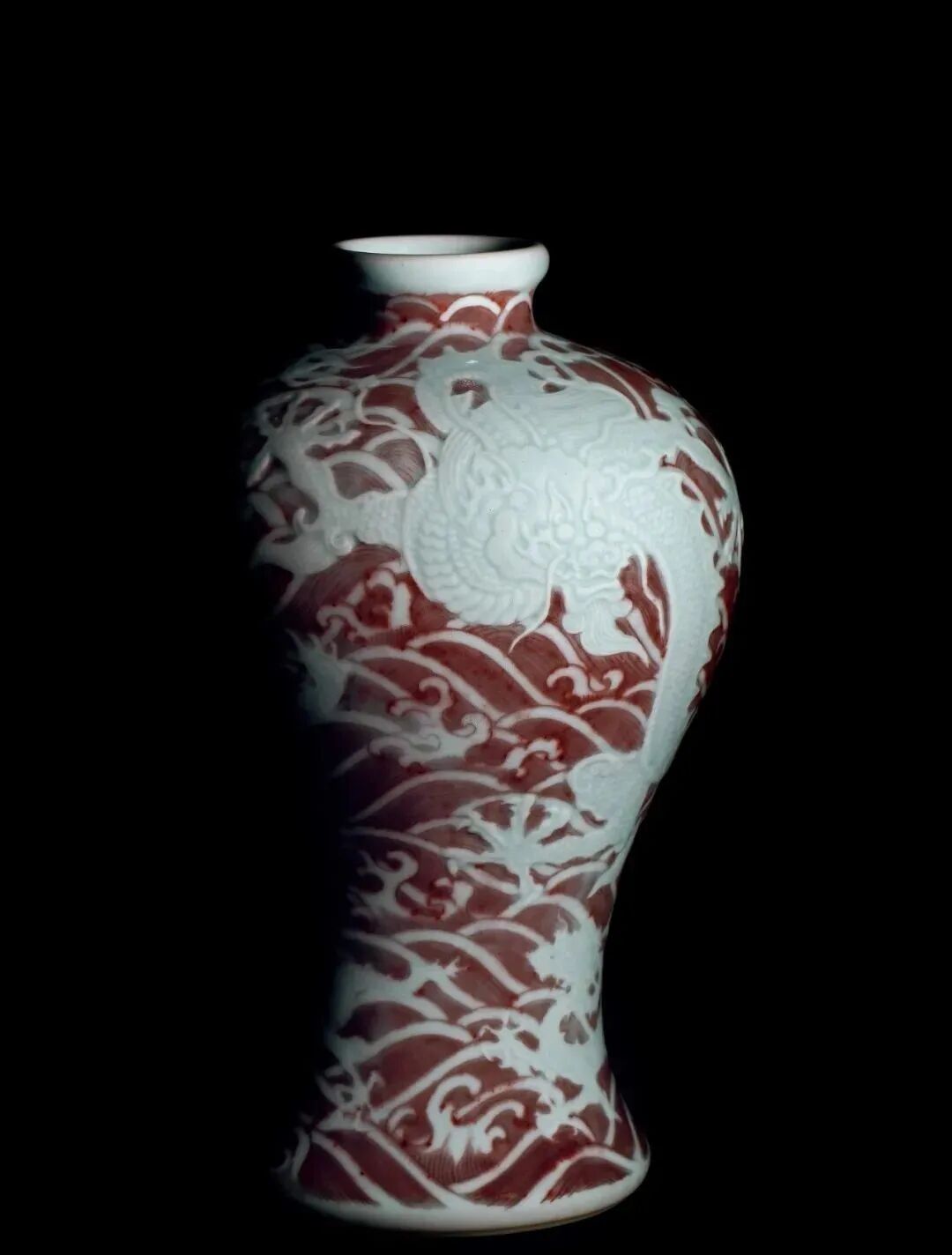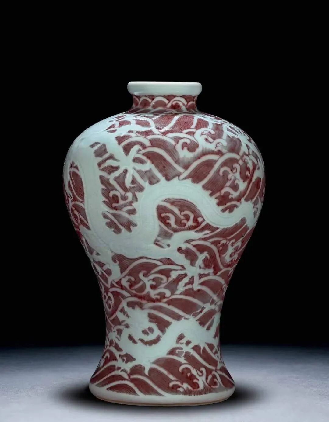 清雍正 釉里红剔刻海水龙纹梅瓶(2600-3500万)