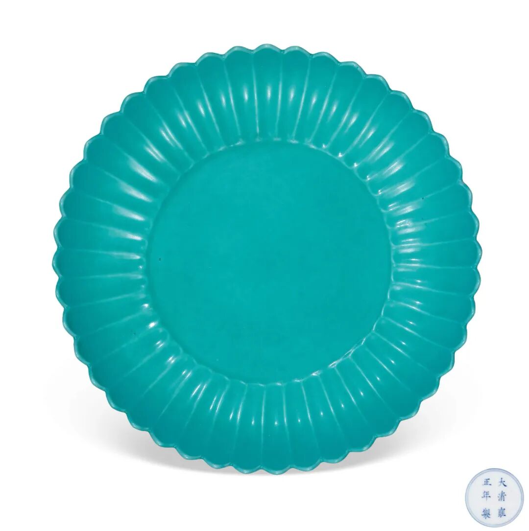 清雍正 湖水绿釉菊瓣盘(220-280万)
