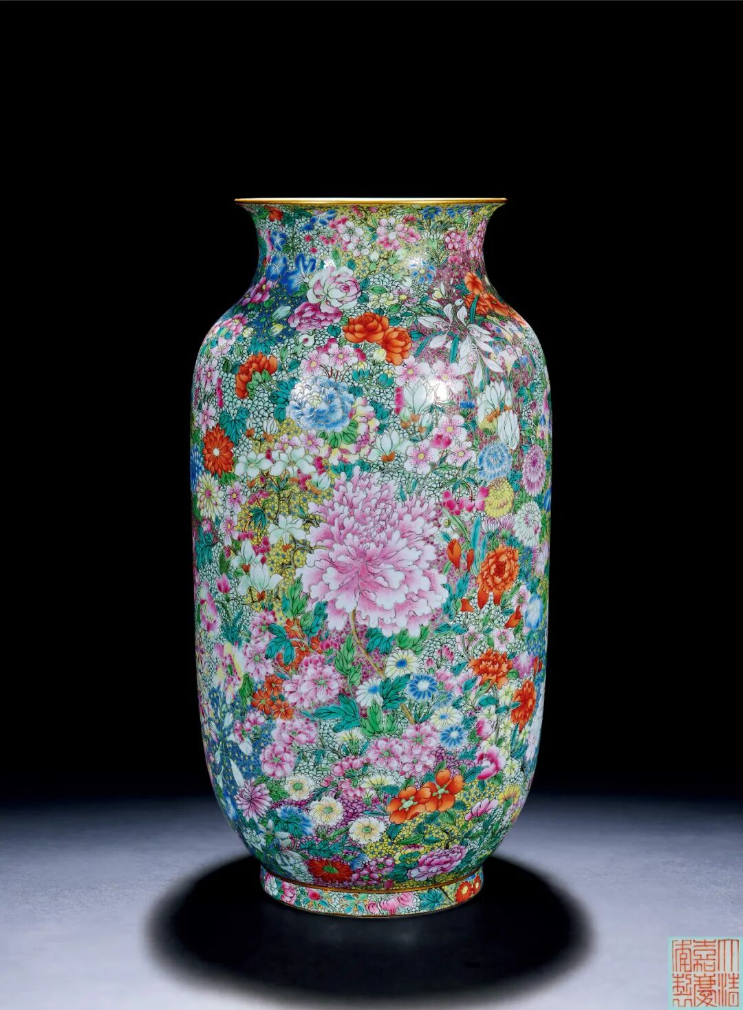 清嘉庆 粉彩百花不露地灯笼瓶(600-800万)