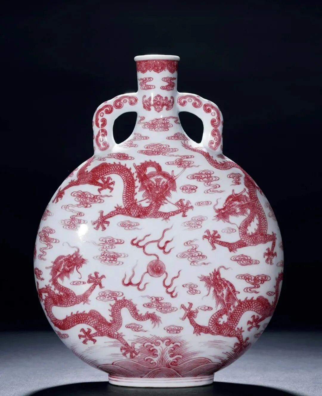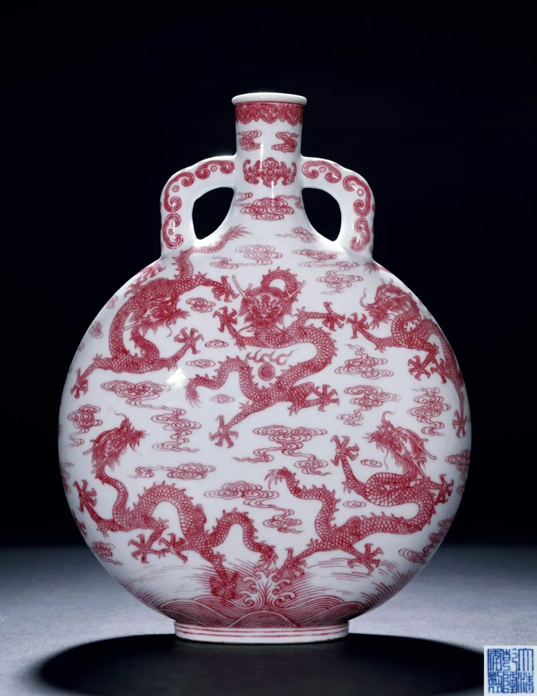 清乾隆 釉里红九龙图抱月瓶(1500-2000万)