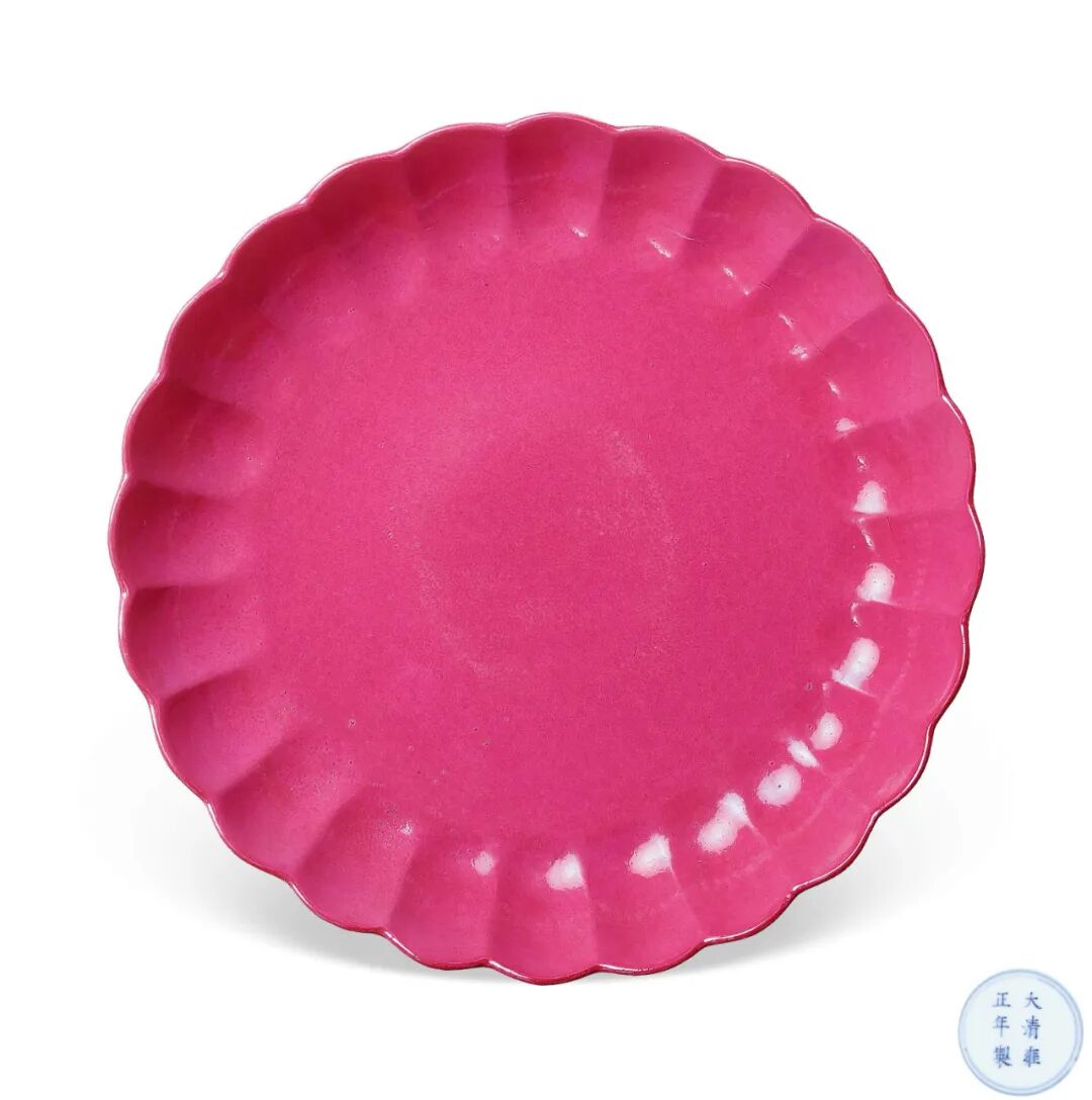 清雍正 胭脂红釉菊瓣盘(200-280万)