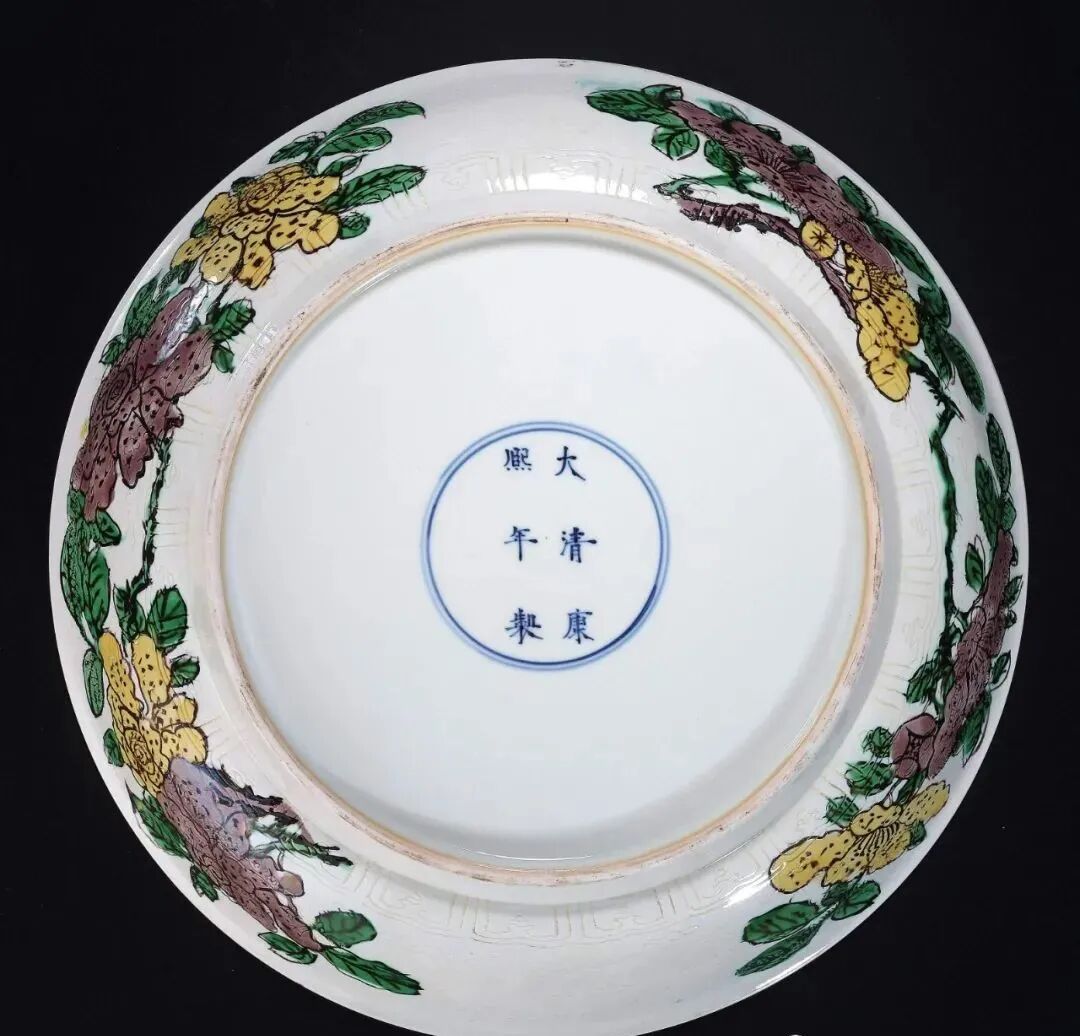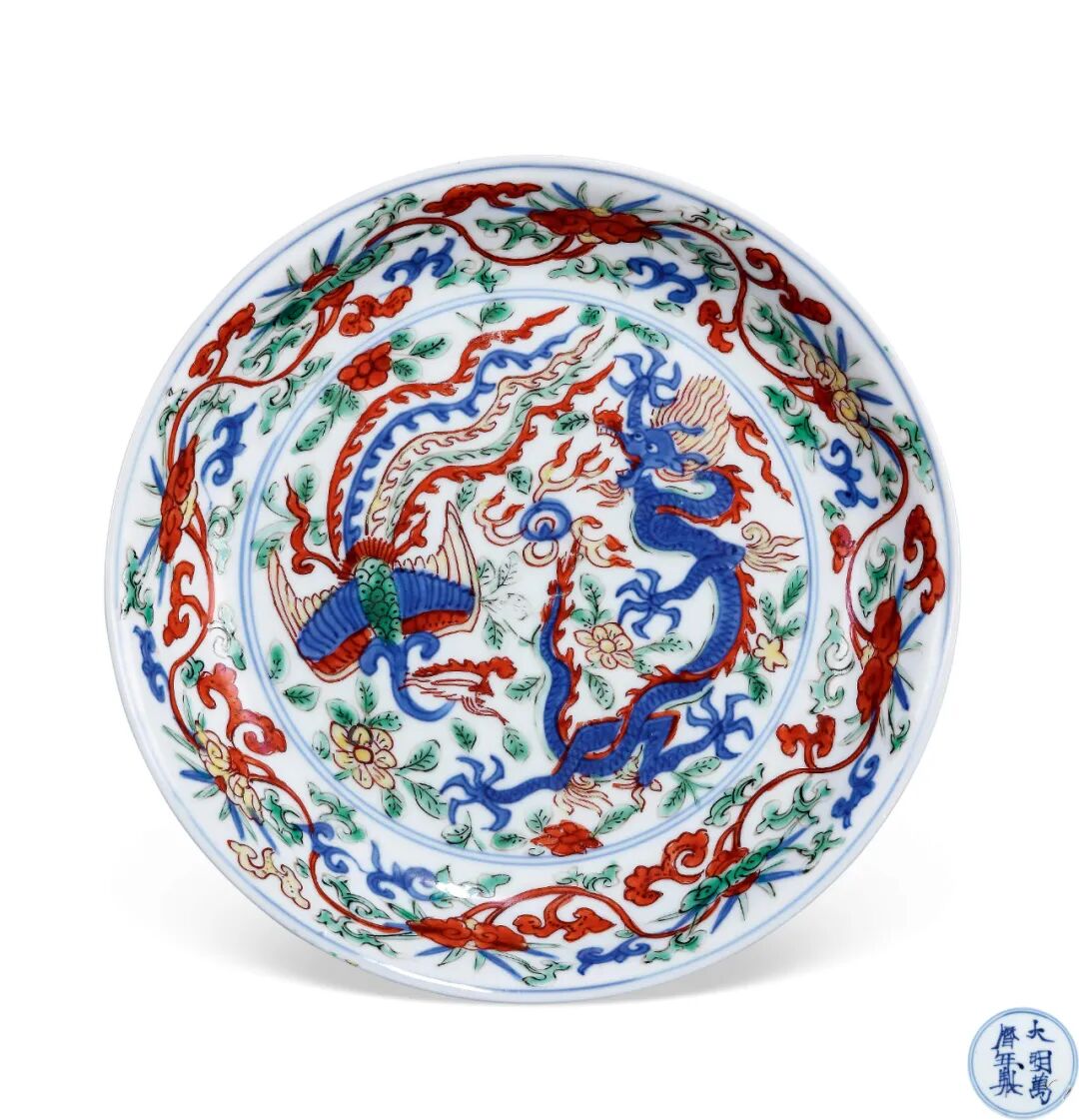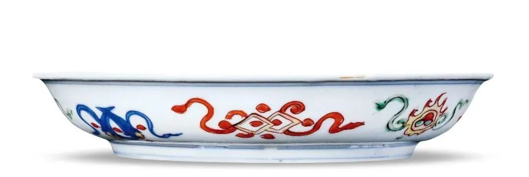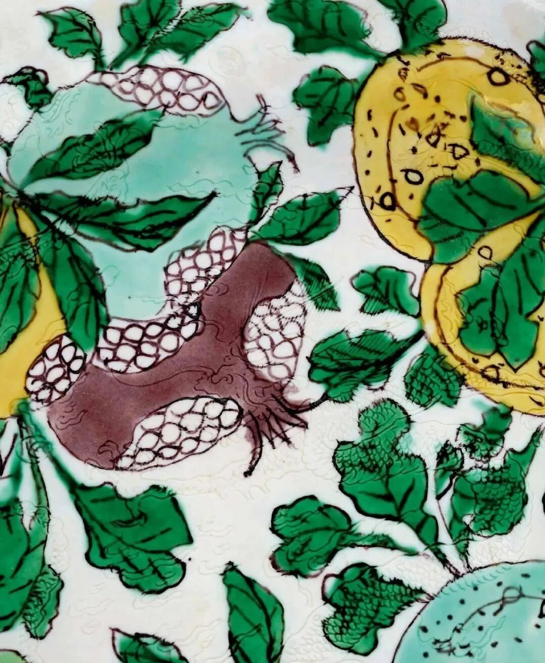 清康熙 白地素三彩暗刻龙纹折枝三多纹盘(100-220万)
