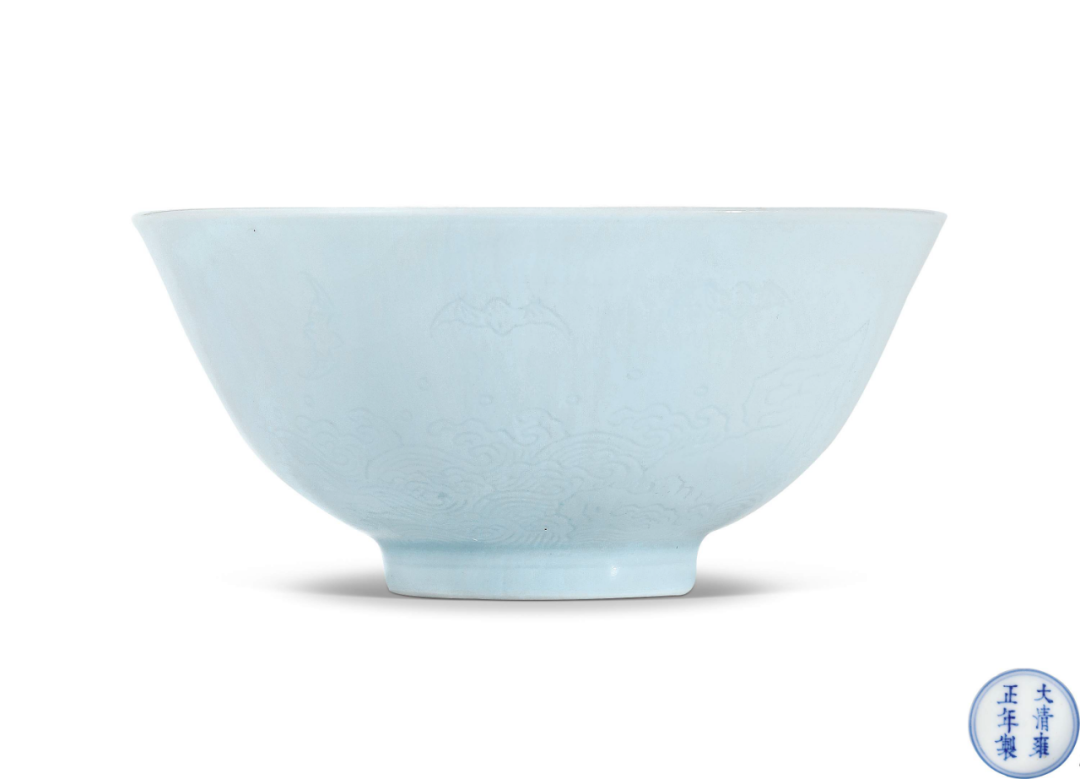 清雍正 粉青釉暗刻福山寿海纹碗(120-150万)