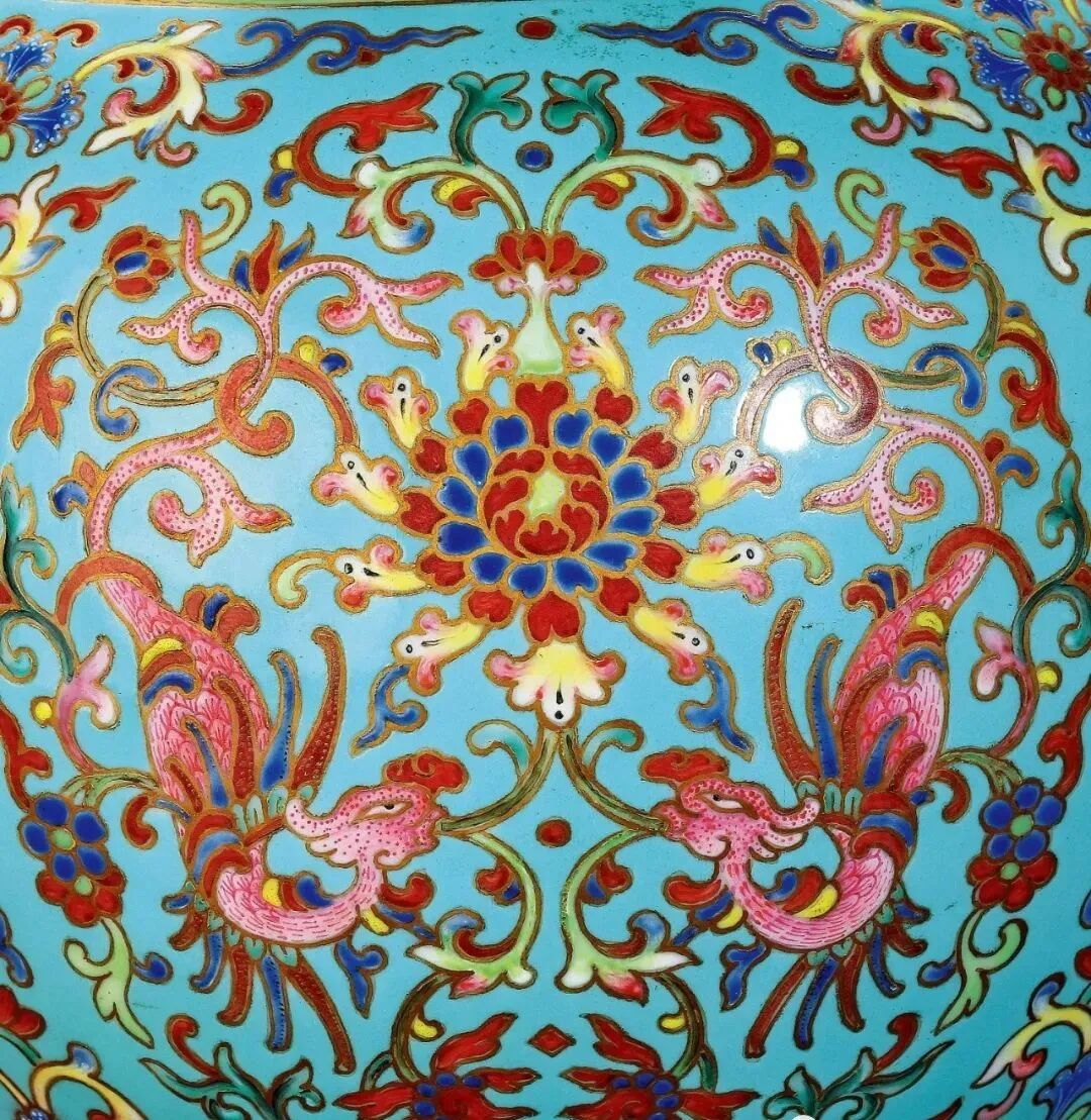 清乾隆 仿汝釉蓝料彩绘夔凤纹鱼篓尊(180-220万)