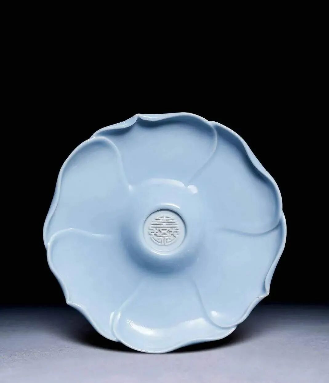 清雍正 天蓝釉团寿心莲花式盏托(220-280万)