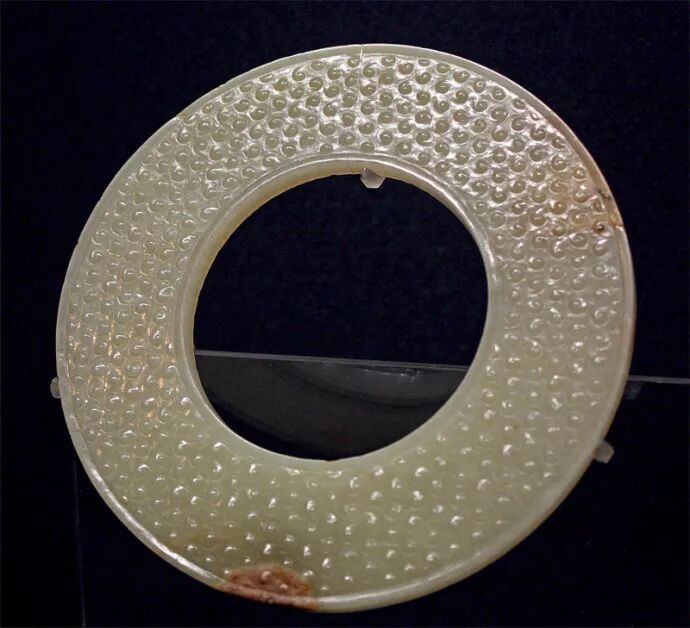 一、玉环内整体琢饰谷纹,双面加工,排列紧密,符合战国晚期风格。