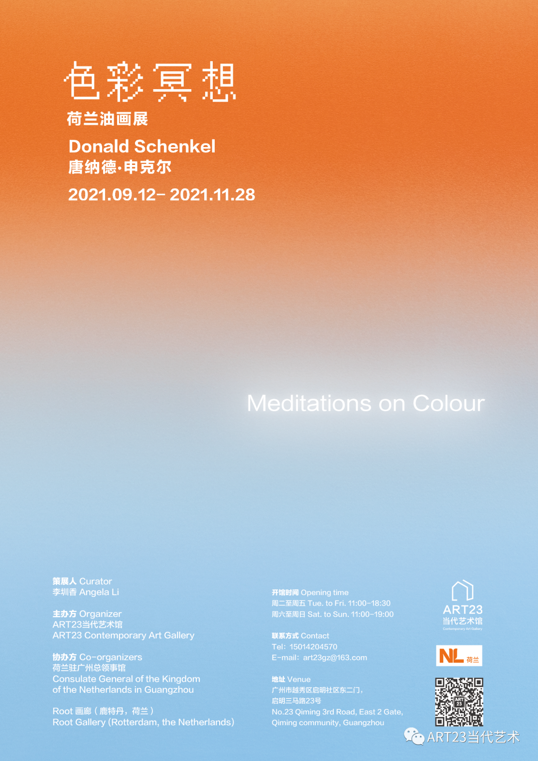 本次展览展出了荷兰新锐艺术家Donald Schenkel因疫情这一大环境而推出的系列作品。新作品加入了更加温暖的黄色和橙色,颜色之间相互映衬,让观者从色彩的冥想之中找寻到温柔而庞大的,治愈的力量。